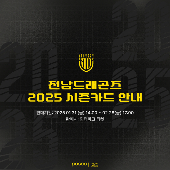 (전남=NSP통신) 김성철 기자 = 전남드래곤즈가 2025시즌 홈경기 관람을 누릴 수 있는 시즌권을 판매한다.