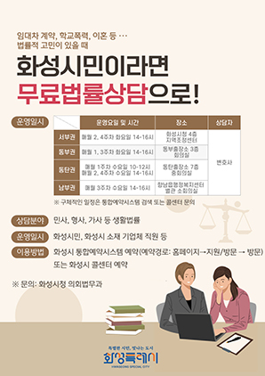 화성시, 복잡하고 어려운 법률 무료상담 지원