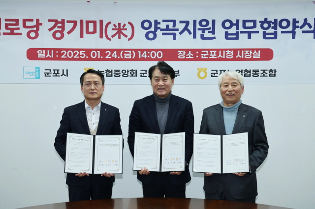 (경기=NSP통신) 정희순 기자 = 경기 군포시(시장 하은호)는 농협중앙회군포시지부 및 군포농업협동조합과 경로당 경기미(米)지원을 위한 업무협약을 체결했다.