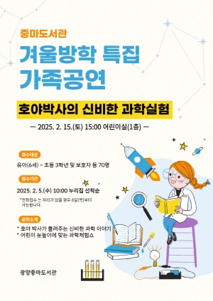 (전남=NSP통신) 김성철 기자 = 광양중마도서관이 겨울방학을 맞아 지역 어린이들에게 과학과 마술을 결합한 특별한 공연을 선보인다.