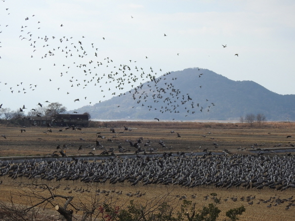 겨울철새 흑두루미는 갯벌과 친숙한 두루미로 ‘갯두루미’로도 불린다. 갯벌에서 잠을 자고 주변 농경지에서 볍씨, 우렁이 등을 먹으며 겨울을 나지만 국내 서식지가 개발되면서 개체수가 급감했다.
