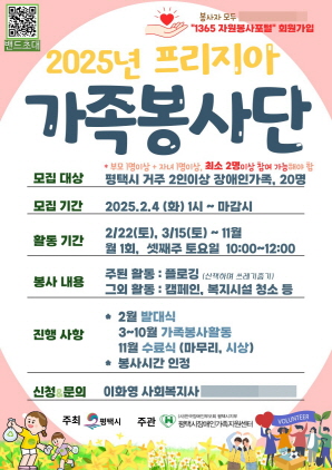 장애인가족봉사단 참여 대상은 평택시에 거주하는 장애인 가족 구성원이면 누구나 가능하며 2~11월 기간 중 월 1회 토요일 오전에 진행한다.