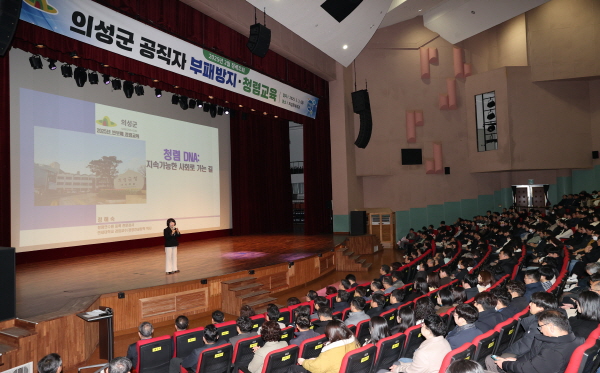 (경북=NSP통신) 조인호 기자 = 의성군(군수 김주수)은 지난 3일 의성문화회관에서 반부패·청렴의식 제고와 투명한 공직문화 조성을 위해 군 소속 공직자를 대상으로 부패방지·청렴교육을 실시했다.