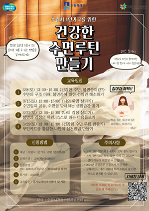 수원시의 1인 가구 건강돌봄 지원사업인 ‘건강한 수면루틴 만들기’는 1인 가구가 건강한 수면 습관을 정립하도록 지원하는 프로그램이다.