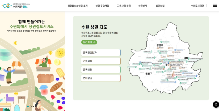 수원 상권정보 플랫폼 ‘수원시장허브’ 웹페이지 2025년 1월부로 공식 오픈