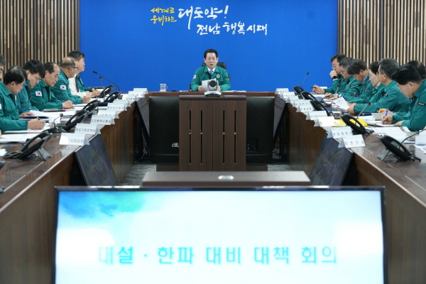 (전남=NSP통신) 남정민 기자 = 김영록 전라남도지사는 7일 오전 대설·한파 대비 대책회의를 열어 도로 제설·취약계층 한파 피해 등 분야별 상황을 살피고 장기 폭설·한파 대비 대책 수립·점검을 지시했다.