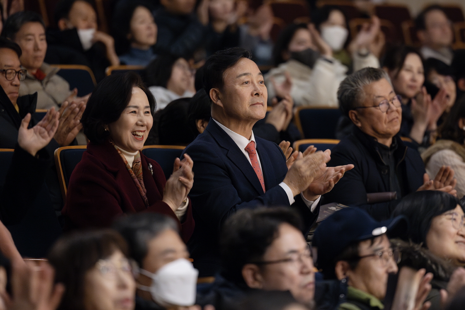 NSP통신-김성제 시장이 시민들과 함께 의왕시필하모닉오케스트라 정기연주회를 감상하고 있다. (사진 = 의왕시)