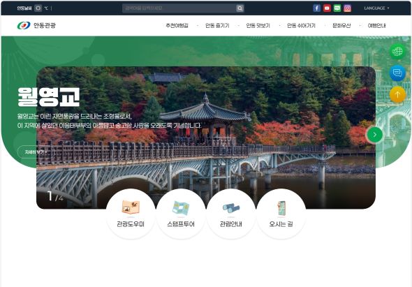 권기창 안동시장은 “이번 누리집 개편을 통해 외국인 관광객이 좀 더 쉽고 편리하게 이용할 수 있도록 정비했으니 많은 분이 K-관광의 중심 안동을 방문해 매력을 맘껏 즐겨보시길 바란다”고 전했다.
