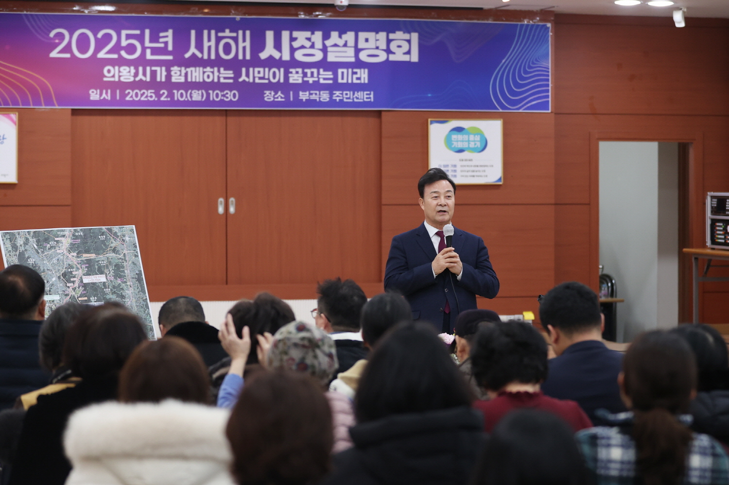 (경기=NSP통신) 김해종 기자 = 김성제 경기 의왕시장이 10일 고천동과 부곡동에서 열린 ‘2025 새해 시정설명회’에 참석했다. 이번 시정설명회는 관내 6개 동을 순회하며 진행된다. 11일에는 오전동과 내손1동, 13일에는 내손2동과 청계동에서 각각 오전 10시 30분과 오후 3시에 진행된다.