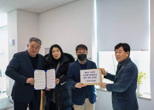 (경북=NSP통신) 김오현 기자 = 영주시의회(의장 김병기)는 지난 12월 18일 의원 만장일치로 채택한 봉화군 도촌리 산업폐기물 매립장 건설 계획에 대해 즉각적인 중단을 촉구하는 결의문을 10일 대구지방환경청을 방문해 전달했다.