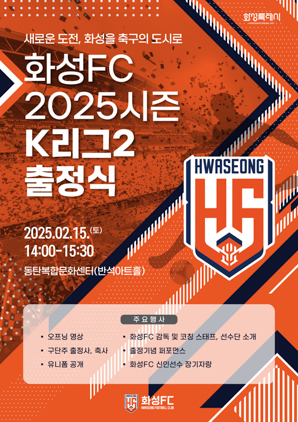 (경기=NSP통신) 조현철 기자 = 경기 화성FC(구단주 정명근)가 오는 15일 동탄복합문화센터 반석아트홀에서 2025시즌 K리그2 프로 진출을 기념하는 출정식을 개최한다.