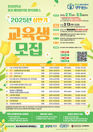 한편 ‘화성 베이비부머 행복캠퍼스’ 상반기 개강식은 3월 13일 협성대학교에서 개최되며 화성특례시 시대를 맞아 시민들을 위한 특강도 함께 진행될 예정이다.