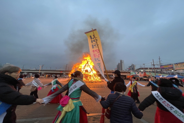 시민들은 직접 적은 소원지를 묶은 달집이 타오르자 다 같이 손을 잡고 달집 둘레를 돌며 소원 성취를 기원하고 서로 덕담을 나누며 흥겨워했다.