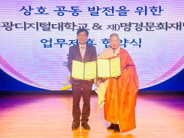 (경기=NSP통신) 김여울 기자 = 원광디지털대(총장 김윤철)가 12일 명경문화재단(이사장 주석 스님)과 단체협약을 체결하고 요가명상과 선명상 분야의 학술 연구 및 교육 교류를 강화하기로 했다.