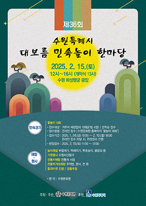 김봉식 수원문화원장은 “가족, 친구, 동료와 함께 대보름 민속놀이 한마당을 찾아 즐거운 시간을 보내길 바란다”고 밝혔다.