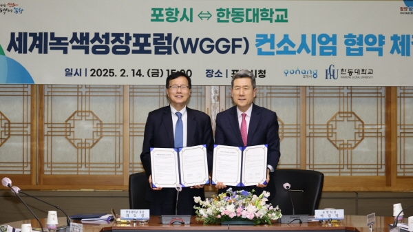 포항시는 14일 시청 중회의실에서 한동대학교와 ‘세계녹색성장포럼(World Green Growth Forum, WGGF) 컨소시엄 업무협약’을 체결하고 세계녹색성장포럼의 성공적 개최와 홍보에 상호 협력키로 했다.