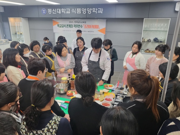 (전남=NSP통신) 김용재 기자 = 전남도교육청(교육감 김대중)은 최근 동신대 식품영양학과에서 영양교사·영양사, 조리사, 조리실무사 170명을 대상으로‘2025 학교급식관계자 조리아카데미 연수’를 실시했다.