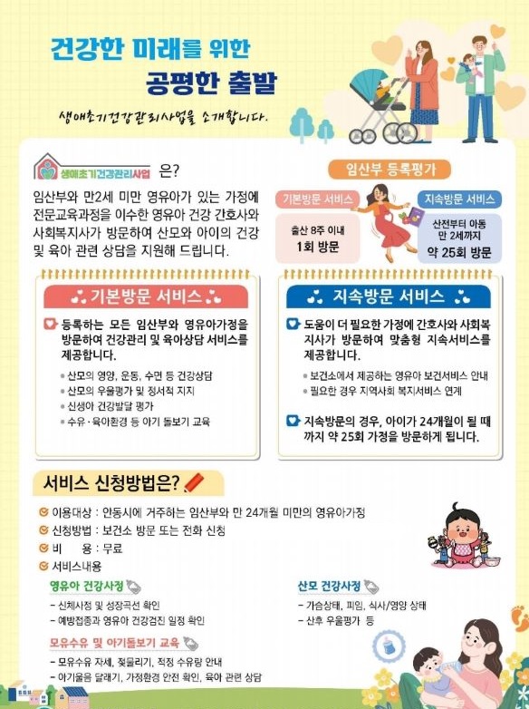 (경북=NSP통신) 김오현 기자 = 안동시는 임산부와 만 2세 미만 영아의 맞춤형 건강관리 교육과 심리 사회적 지원을 위한 ‘생애초기 건강관리사업’을 추진중이다.