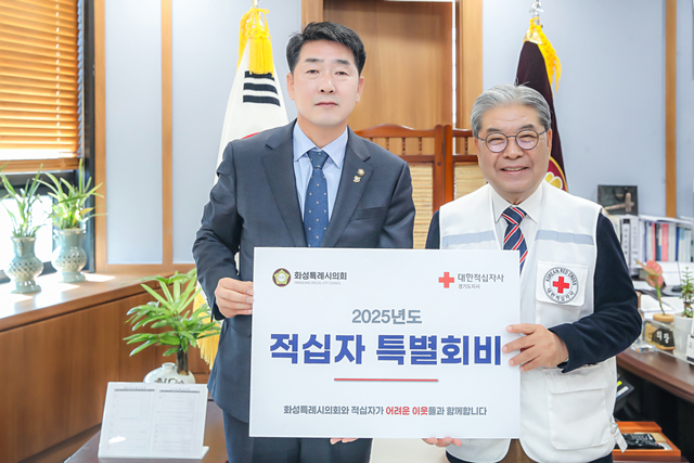 배정수 화성시의회 의장은 특별회비를 전달하며 “우리사회에 굵직굵직한 사건, 사고마다 이웃의 어려움을 외면하지 않는 적십자사의 인도주의 정신에 존경을 표한다”면서 “봉사자분들과 헌혈자들에게 깊이 감사드리며 나눔으로 동참할 수 있게 돼 기쁘다. 화성특례시의회는 앞으로도 우리 지역사회에 기부와 나눔 문화 확산을 위해 앞장설 것”이라고 말했다.