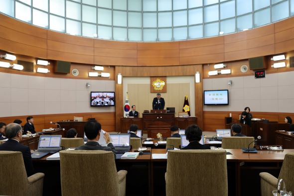 군정주요업무계획 보고 청취, 2024 회계연도 세입·세출 결산검사위원 선임 등 12개의 안건 상정