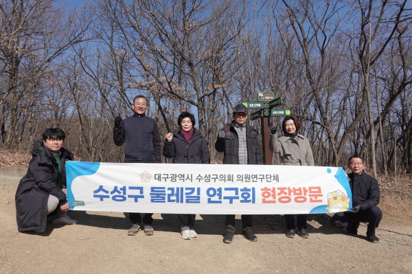 이번 현장방문은 수성구 둘레길의 개발과 보전, 그리고 경제·관광 활성화를 위한 정책적 대안을 마련하기 위해 진행됐으며 최진태 부의장(연구단체 회장), 김희섭 의원, 최명숙 의원과 관계 공무원이 함께 참여했다.