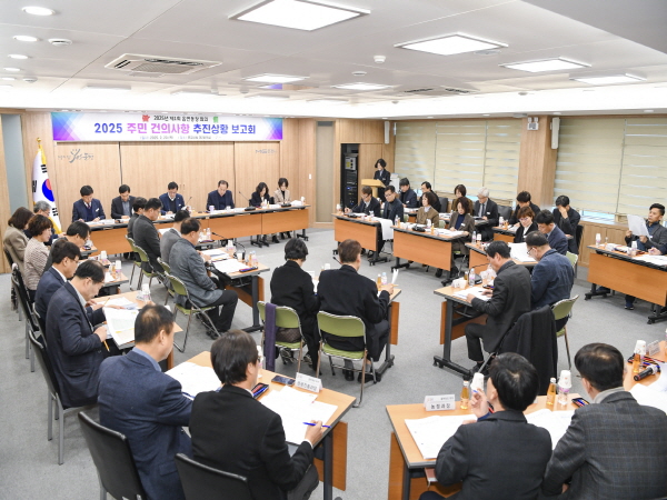 이번 보고회는 지난 1월에 실시한 14개 읍면동을 순회하며 진행한 ‘2025 읍면동 주민과의 공감·소통 간담회’ 주민 건의사항에 대해 부서별 검토결과 및 향후 추진 계획을 중점적으로 논의하기 위해 마련됐다.