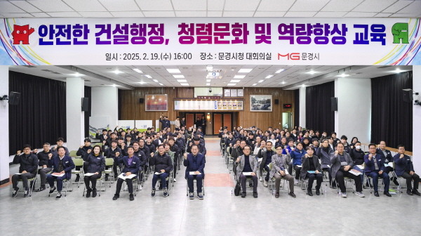 (경북=NSP통신) 김대원 기자 = 문경시(시장 신현국)는 지난 19일 시청 대회의실에서 공무원과 민간건설사 및 용역사 등 150여 명을 대상으로 건설행정과 청렴문화에 대한 역량향상 교육을 실시했다.