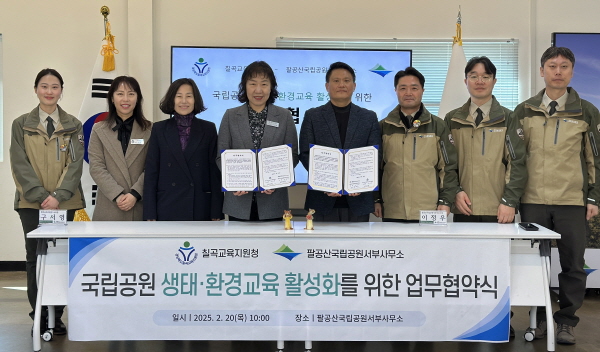 (경북=NSP통신) 김대원 기자 = 칠곡교육지원청(교육장 구서영)과 팔공산국립공원서부사무소(소장 이정우)는 미래 세대를 위한 생태환경교육 활성화를 위해 지난 20일 업무협약(MOU)을 체결하고 지속가능한 교육협력 체계를 구축했다.