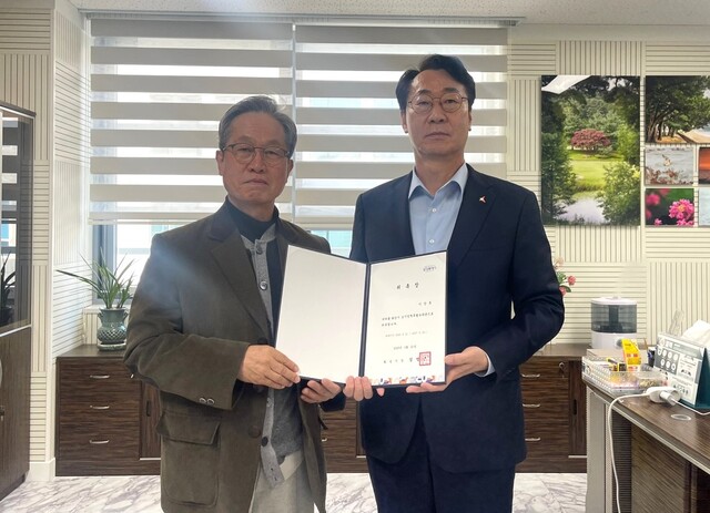 NSP통신-21일 정명근 화성시장(오른쪽)과 이상후 도시정책특별보좌관이 기념촬영을 하고 있다. (사진 = 화성시)