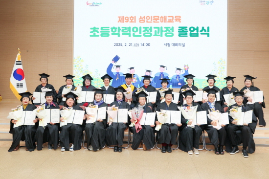 (전남=NSP통신) 김성철 기자 = 광양시가 지난 21일 시청 대회의실에서 성인문해교실 초등과정 졸업식을 개최하고 3년간의 배움 끝에 초등학력을 인정받은 20명의 학습자에게 졸업장을 수여했다.