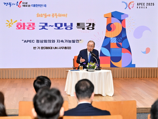 (경북=NSP통신) 조인호 기자 = 경상북도는 25일 통합과 소통, 공존과 헌신을 통해 갈등과 결핍이 없는 미래를 만드는 ‘보다 나은 미래를 위한 반기문재단’ 이사장인 제8대 반기문 UN 사무총장을 초청해 화공 굿모닝 특강을 개최했다.