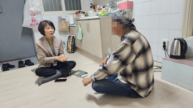허순옥 베테랑팀장이 조모씨와 이야기를 나누고 있다. (사진 = 수원시)