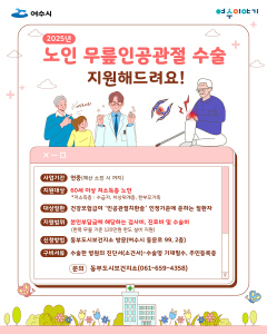 한편 여수시는 지난해 노인 33명의 무릎인공관절 수술 42건을 지원했다.