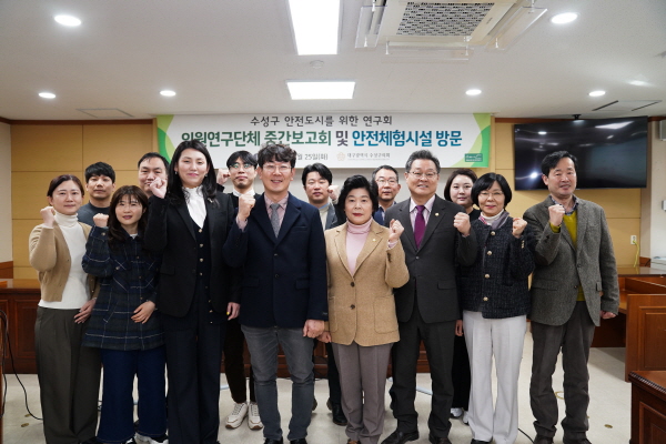 남정호 연구단체 회장은 “이번 중간보고회와 안전체험시설 방문을 통해 수성구 안전취약계층 안전관리에 대한 구체적인 방안을 모색하고 현장 방문에서 얻은 정보를 통해 더욱 깊이 있는 연구를 이어가겠다”고 밝혔다.