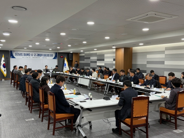 경상북도는 27일 도청 중회의실(254호)에서 2025년도 교통 분야 주요 시책을 공유하고 APEC 개최에 따른 교통 대책 등 도정 주요 현안 사항 추진 협력 방안을 논의하기 위해 ‘도-시군 교통 업무 담당과장 회의’를 개최했다. (사진 = 경상북도)