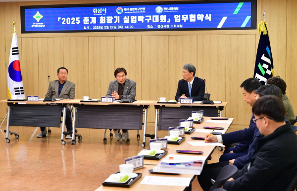 (경북=NSP통신) 김대원 기자 = 경산시(시장 조현일)는 27일 경산시청 소회의실에서 한국실업탁구연맹(회장 안재형), 경산시체육회(회장 강영근)와 ‘2025 춘계 회장기 실업탁구대회’ 성공 개최를 위한 업무협약(MOU)을 체결했다.