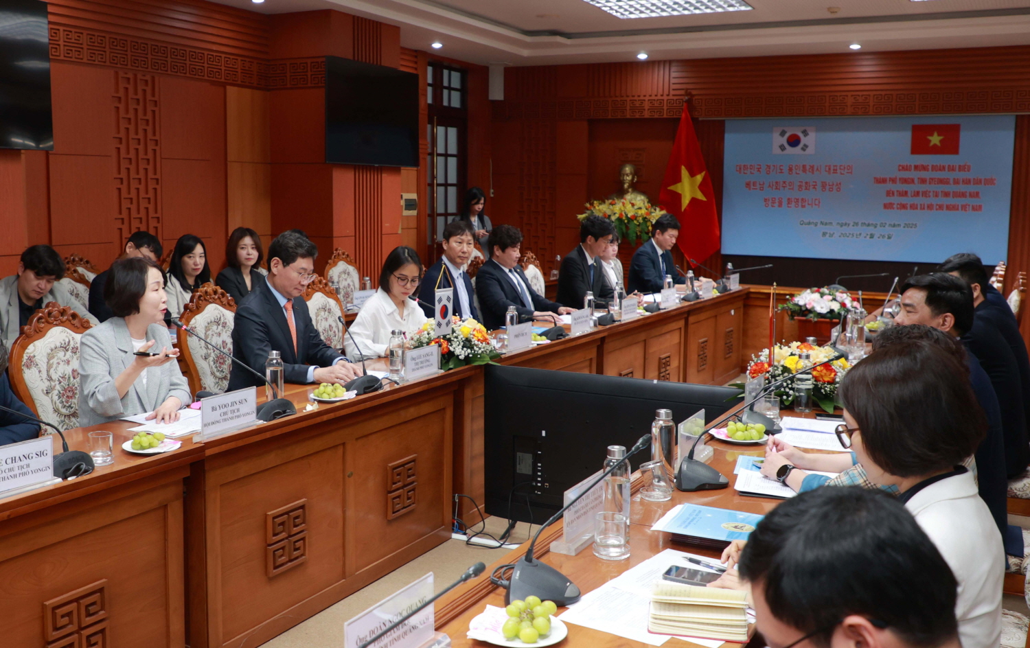 먼저 26일 오전 10시 30분 베트남 꽝남성청에서 레반중(Lê Ván Dũng) 꽝남성장 인민위원회 위원장(꽝남성장) 등 꽝남성 고위 관계자들과 양 도시의 교류 협력 방안 논의를 위한 간담회가 열렸다.
