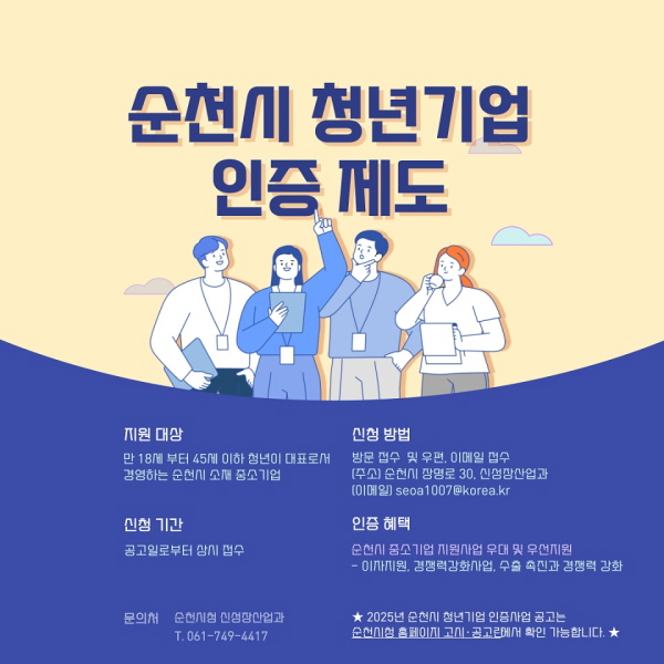 순천시, 청년기업 지원 위한 인증사업 시행