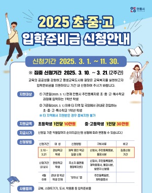 교복, 스마트 기기, 도서, 학용품 등 입학 준비에 필요한 물품 구입에 사용 가능
