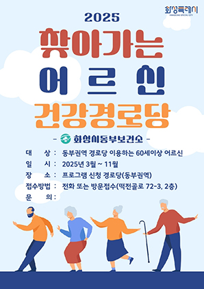 심정식 화성시동부보건소장은 “경로당은 노인들이 일상적으로 머무는 공간인 만큼 건강관리 프로그램을 보다 효과적으로 운영할 수 있는 최적의 장소”라며 “찾아가는 노인 건강경로당 사업으로 노인들의 질환 악화 방지와 건강한 일상 유지에 실질적인 도움을 제공하겠다”고 말했다.