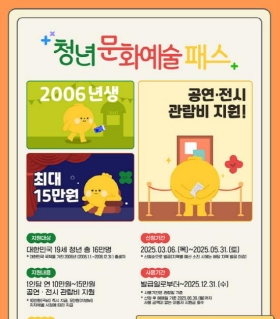 지난해 처음 도입된 ‘청년문화예술패스’는 지역 청년들에게 다양한 문화예술 기회를 제공하기 위해 소득과 관계없이 공연·전시 관람비 15만 원을 지원하는 사업이다.