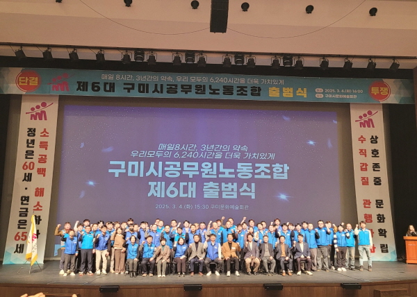 (경북=NSP통신) 조인호 기자 = 구미시공무원노동조합(위원장 곽병주)은 지난 4일 구미시문화예술회관에서 내빈, 직원 및 조합원 등 700여 명이 참석한 가운데 제6대 출범식을 개최했다.