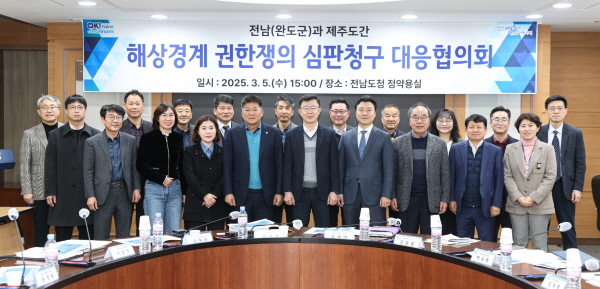 (전남=NSP통신) 남정민 기자 = 전라남도는 10개 연안 시군과 법무법인 세종, 완도바다지킴이 범군민대책위원회 등 민·관 관계자 18명이 참석한 가운데 지난 5일 도청에서 해상경계 권한쟁의 대응협의회를 개최했다고 밝혔다.