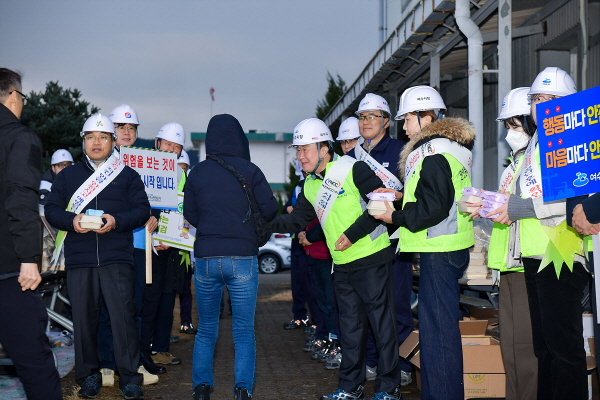 참여자들은 현장 근로자를 향해 ‘작업은 안전하게, 퇴근은 활기차게’ 안전 구호를 제창하고 홍보물을 배부하는 등 근로자 안전의식 고취에 힘썼다.