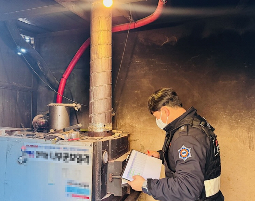 강원특별자치도소방본부에서 화목보일러의 안전점검을 실시하고 있는 모습.