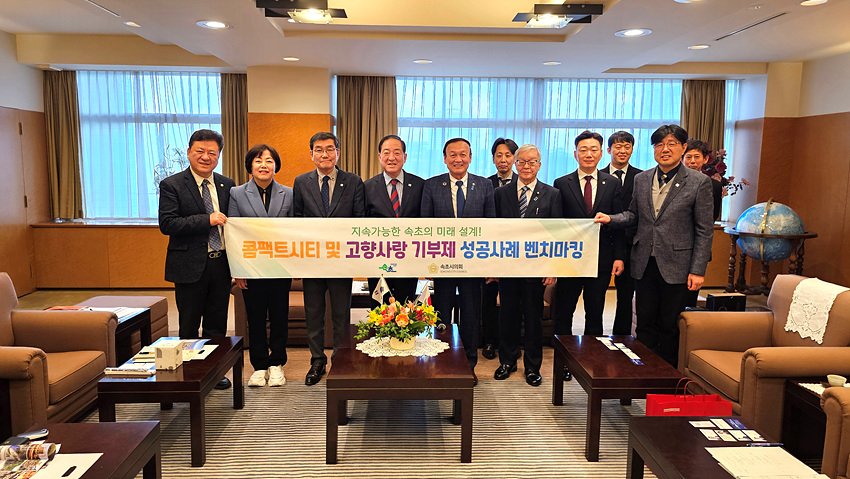 (강원=NSP통신) 조이호 기자 = 콤팩트시티 및 고향사랑기부제 선진사례 벤치마킹을 위해 일본을 방문 중인 이병선 속초시장은 7일 콤팩트시티 우수 사례로 손꼽히는 일본 도야마현 도야마시를 찾아 후지이 히로히사 도야마시장과 간담회를 가졌다.