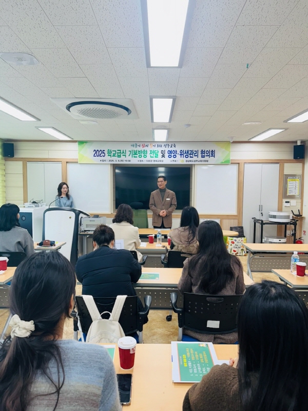 이날 협의회는 학교 급식의 영양 및 위생관리 수준을 향상시키고 안전한 급식 환경 조성을 위해 마련됐으며 ▲2025년 학교급식 기본방향에 대한 주요 정책 방향과 세부 추진 계획 전달 ▲학교급식 식중독 예방 대책 ▲급식 분야 청렴도 향상 방안 ▲학교급식 특색사업 ‘전통 장류 담그기 사업’ 운영 등 올해 급식 운영 전반에 대한 정보를 공유하고 실무 역량을 강화하는 기회가 됐다.