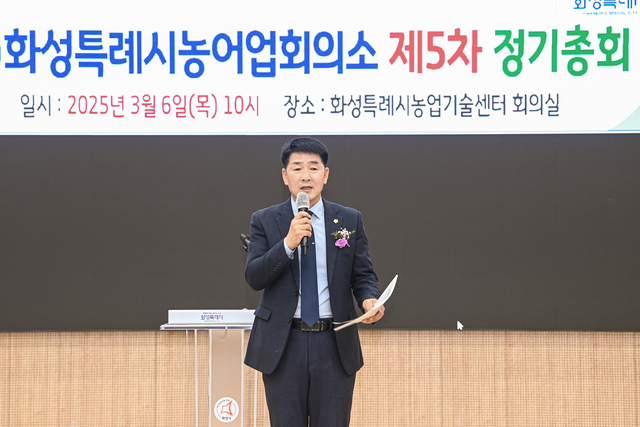 (경기=NSP통신) 조현철 기자 = 경기 화성시의회(의장 배정수)가 6일 오전 화성시 장안면 화성농업기술센터 대강당에서 열린 화성특례시농어업회의소 제5차 정기총회에 참석해 농어업인들에 응원과 감사를 전했다.