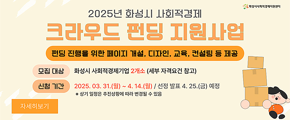 (경기=NSP통신) 조현철 기자 = 경기 화성시(시장 정명근)가 ‘2025년 화성시 사회적경제 크라우드펀딩 지원사업’으로 지역내 사회적경제기업의 온라인 판로 확대에 나선다.