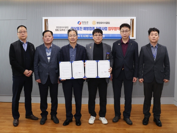 (경북=NSP통신) 조인호 기자 = 영양군(군수 오도창)은 지난 6일 군청 소회의실에서 ‘영양군민 대상포진 예방접종 지원사업’을 추진하기 위해 국제로타리클럽3630지구 영양로타리클럽(회장 김종호)과 업무협약을 체결했다.